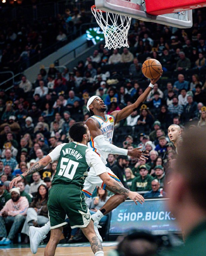 亚历山大今天面对字母哥大发神威,相当高效全面,出战33分钟,投篮19中16,三分2中2,罚球7中6,狂轰40分7篮板11助攻的豪华数据,正负值+19。值得一提的是,这是亚历山大生涯第二次单场拿到至少40分10助。亚历山大目前也已经连续115场得分20+,距离张伯伦的纪录越来越近。