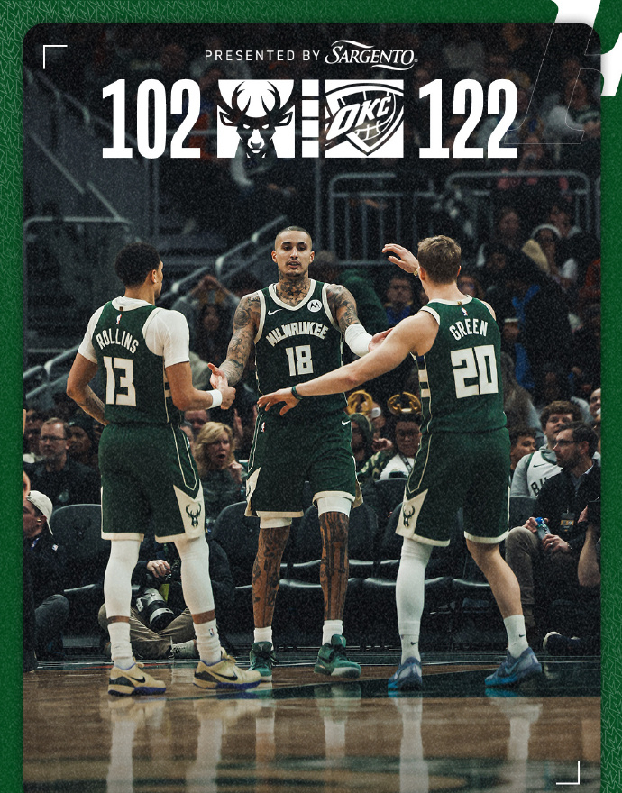 雄鹿这边,全队有6人得分上双,但却没有人超过20分。字母哥表现还可以,十分高效,但也比亚历山大比了下去,首发出战31分钟,投篮11中8,罚球6中3,空砍19分14篮板7助攻的数据,正负值-11。